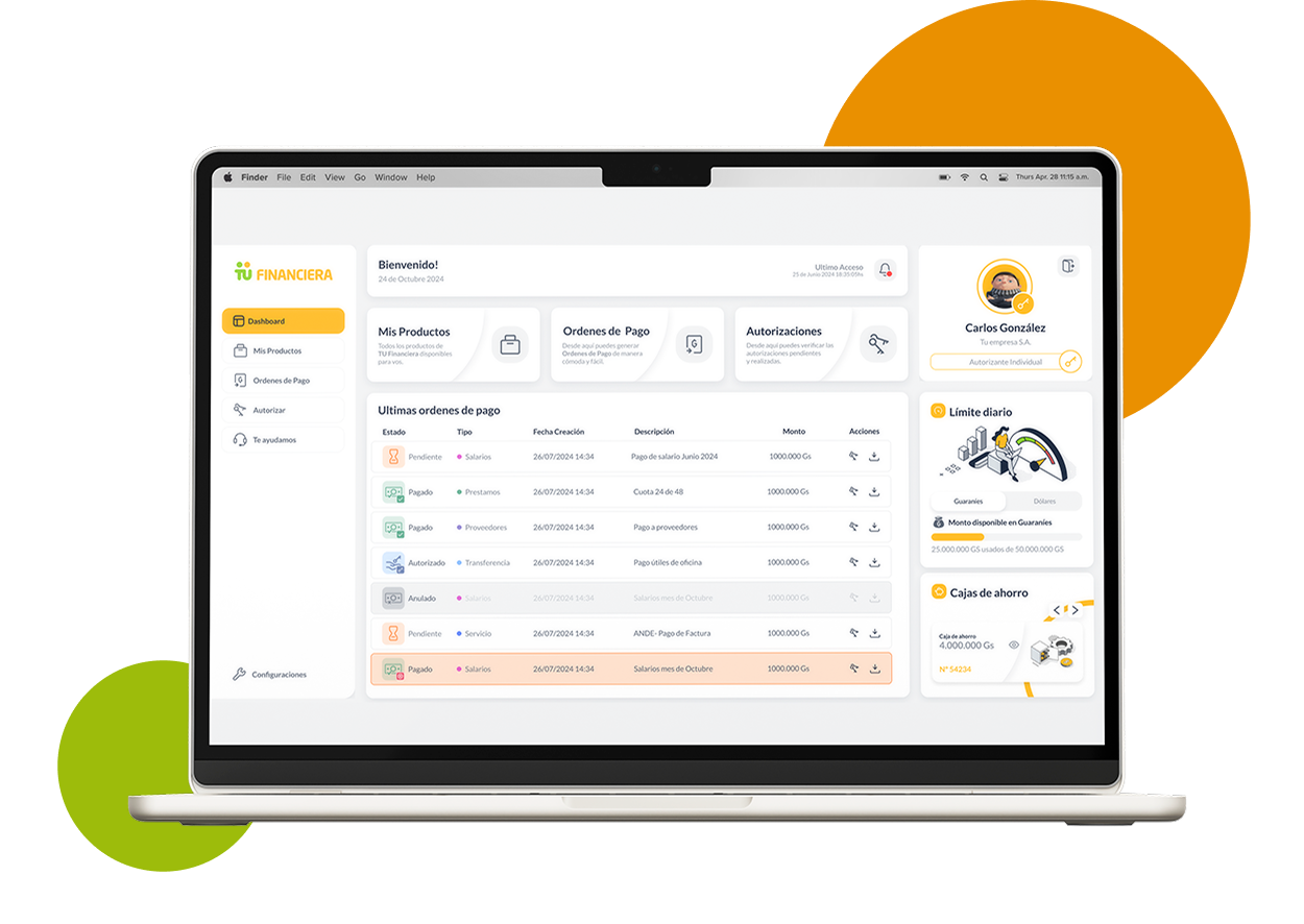Gestioná cuentas, autorizá pagos y controlá el flujo de caja de tu negocio en una sola plataforma.